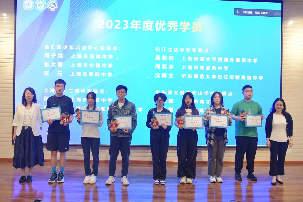 2023年实践工作站共有10位同学获评上海市青少年科学创新实践工作站优秀员工。现场邀请市园科院韩玉洁副经理和上海城市生态重点实验室副主任张秋卓教授为到场的8位同学颁发优秀学员证书。优秀学员代表周子恒同学分享了他在站期间的学习过程、收获与感想。他表示进入实践工作站的学习让他学会站在科学的角度,用科学的思维去看待、去研究他所热爱的东西,更好地认识我们赖以生存的环境。他用一句话总结自己的感想“去感受、去学习、去热爱”,与在场的同学们共勉。