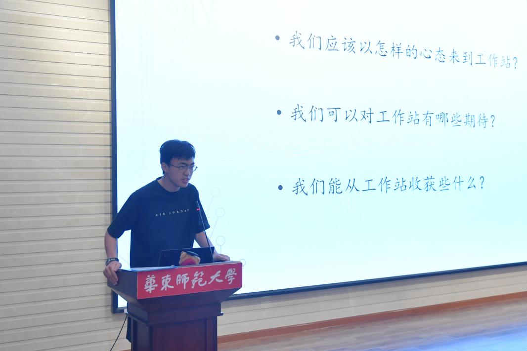 工作站站长邓泓副教授为同学们详细介绍了工作站概况、科创课题和课程安排。她用一颗掉落在绿篱深处的田菁种子突破黑暗向阳而生的故事鼓励同学们,面对困难时不要放弃,坚持向上,终有一天能够突破障碍,沐浴在成功的阳光下。期望同学们在科创学习过程中学会坚持、学会合作、学会提问、学会思考。