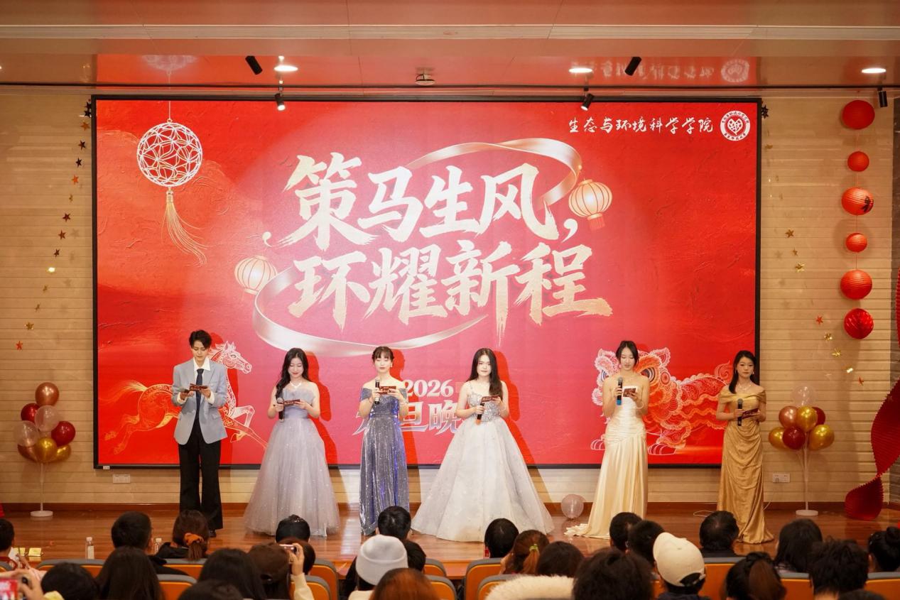 • 蛇游九域辞旧岁,马踏九州启新程;辞暮尔尔,烟火年年。今夜生环人相聚于此,共赴2026的新征程!2025年12月26日晚,太阳集团tcy8722“策马生风 环耀新程”元旦晚会在温暖的灯火与热烈的掌声中圆满落下帷幕。这不仅仅是一场文艺汇演,更是一场承载着学术精神、人文关怀与时代担当的年度仪式。师生相聚于此,以艺术为桥,以情谊为舟,共同跨越时光之河,驶向2026年的崭新航程。公司党委书记嵇渭萍、党委副书记王晶晶、上海英凡环保科技有限公司的张明成、赵兵院友;学院师生代表200余人参加本次晚会。晚会开场前的学院年度成果回顾,不是简单的成绩罗列,而是一幅生环人用智慧与汗水绘就的精神图谱;科研论文的