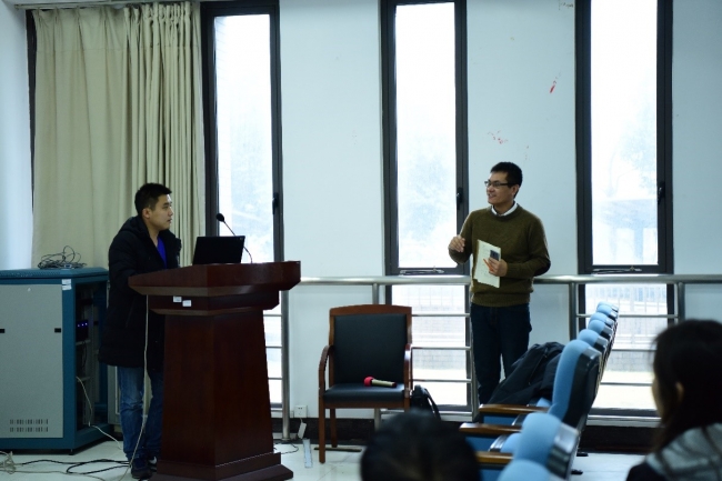 主持人夏建阳老师在简短的开篇后,来自上海交通大学刘春江老师课题组的杜宝明同学带了第一个口头报告,题目为:“植物和寄生昆虫化学计量协同适应性研究”。杜宝明同学今年博士五年级,他截取了自己博士论文的三章作为报告内容,刘春江老师进行提问,并给出建议。