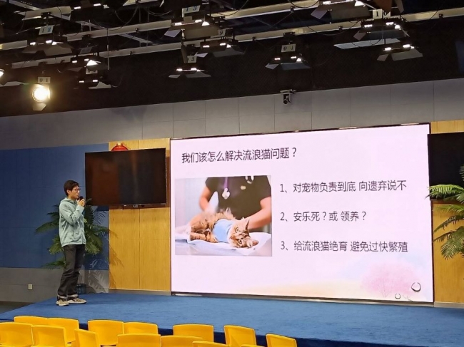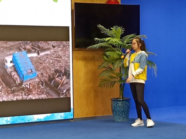 本次课程在紫竹小学的电视演播厅开展,主讲人顾淳恺同学和袁佳琪同学以城市病为切入点,介绍了都市生活中方方面面的环境问题,通过城市生态建筑,家庭绿色发电,街道流浪猫狗等一个又一个生动有趣的案例,给小员工们普及了都市生活中基本的生态环境知识。本次环境教育课旨在培养小员工们作为城市主人公的参与意识,鼓励员工们认真践行上海垃圾分类的行动,拓宽他们的视野,激励他们在城市环境治理过程中,从自身做起,齐心保护绿色家园。